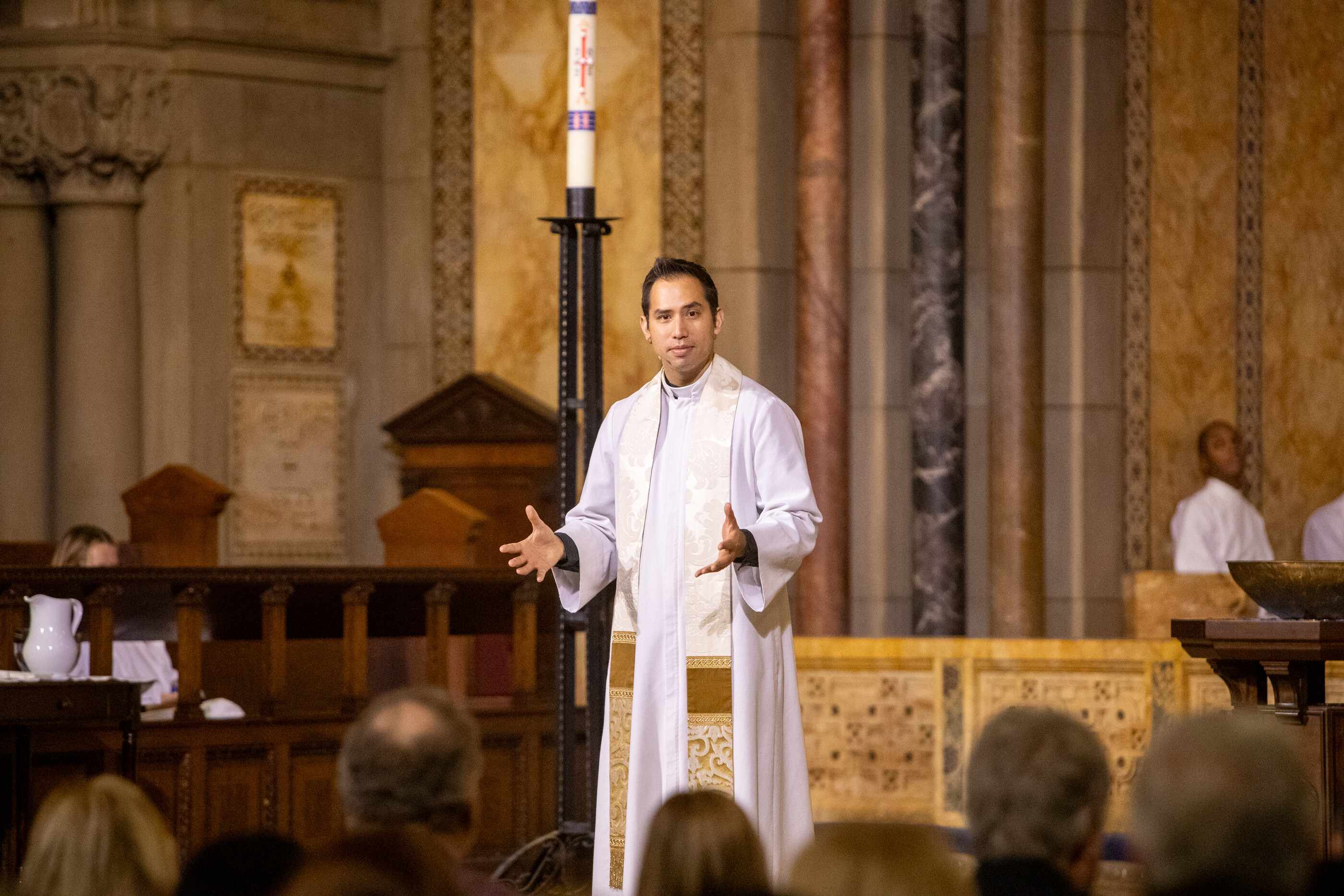 Enjoy these photos from All Saints’ Sunday at St. Bart’s. We welcomed five newly baptized children into our community, and Vestry Member Rachel Farrar, who also sings in the St. Bartholomew’s Choir, shared why she is supporting the 2026 Pledge Campaign, Forward Together in Faith. During coffee hour, the Migrant Welcome Committee joined Episcopalians and interfaith partners from across New York to write postcards to our state legislators in support of H.R. 1061 and S. 455, the Protecting Sensitive Locations Act, which would ensure sanctuary protections for houses of worship.